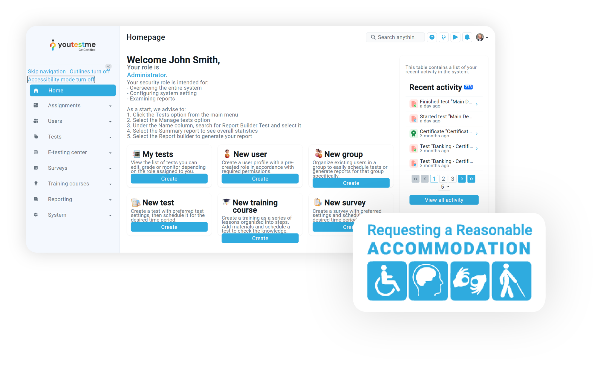 YouTestMe GetCertified software is designed to be user-friendly, easy to navigate, and accessible to users with disabilities. This includes making sure that our platform is compatible with assistive technologies such as screen readers, providing alternative text for images, and ensuring that forms are navigable and understandable.