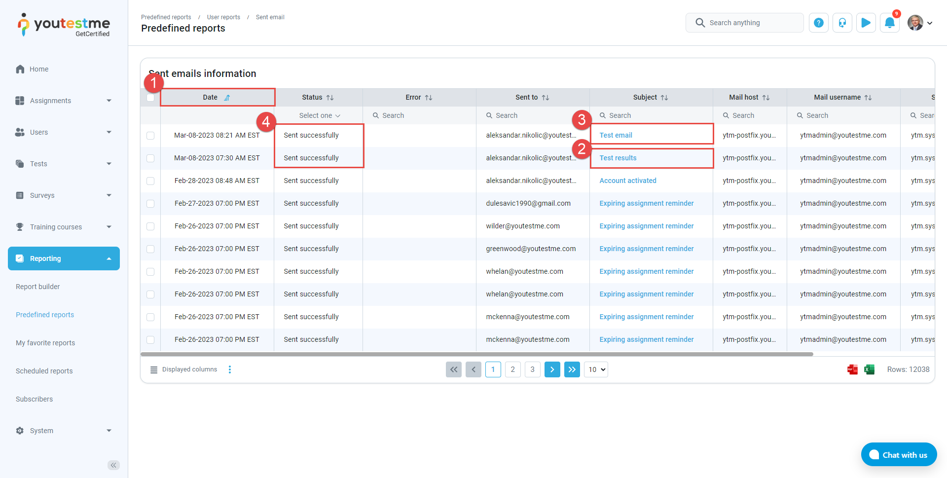 - Check if their status is Sent successfully. If you cannot find these emails or the status is something other than Sent successfully, contact our support team.