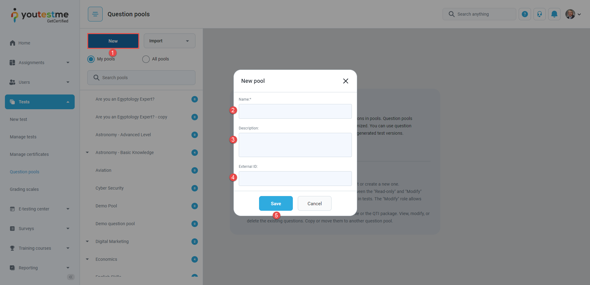 To create a new question pool, follow these steps: