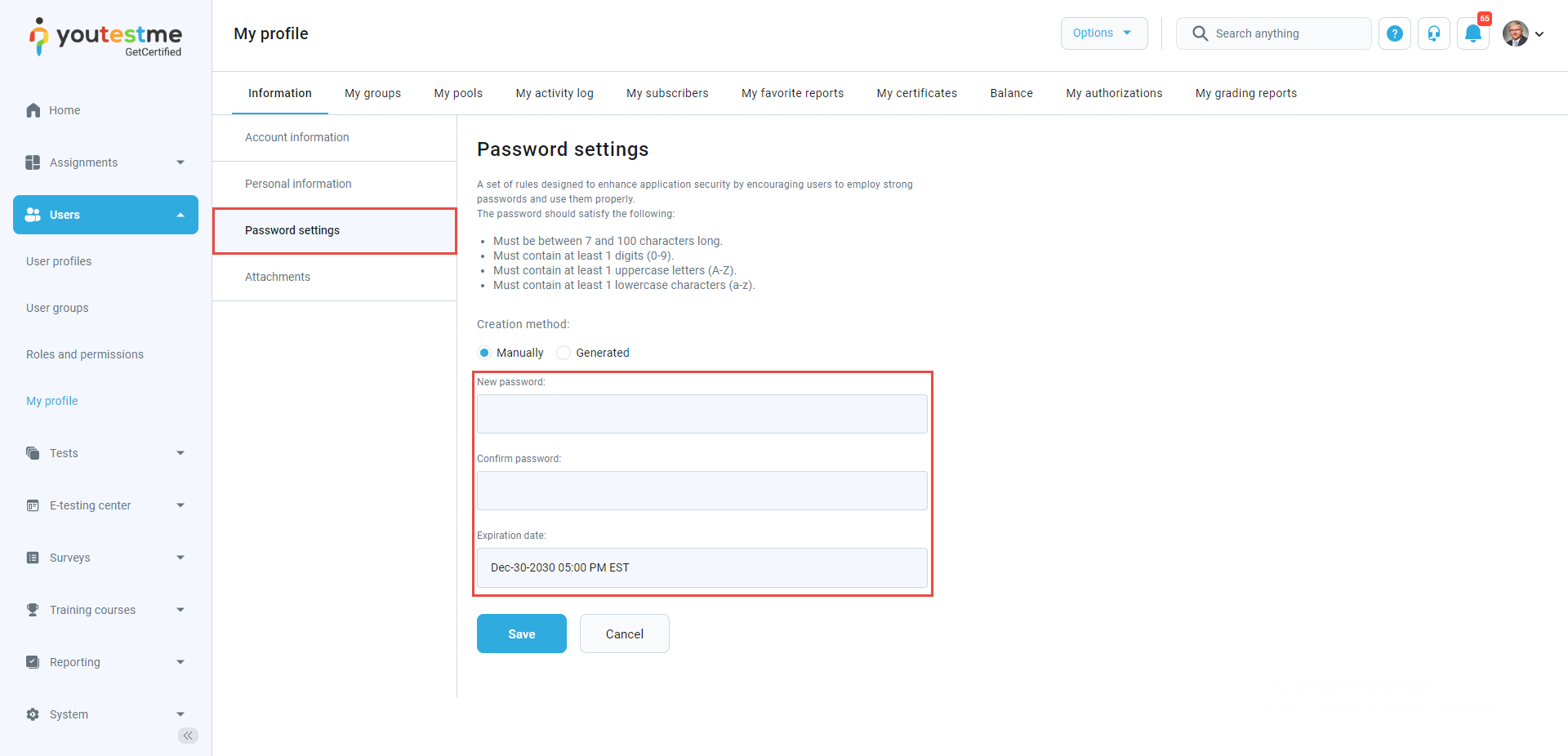 - New user profile created – This notification triggers when a user with the administrator role visits the Users/User profiles page and creates a new user on the Create new user tab. Another way the notification triggers is that the administrator on the List of all users tab clicks the Load users button to upload users from an Excel file. If the notification is enabled, each created user will receive an email containing his profile credentials. After you receive the credentials, you can log in to the system.