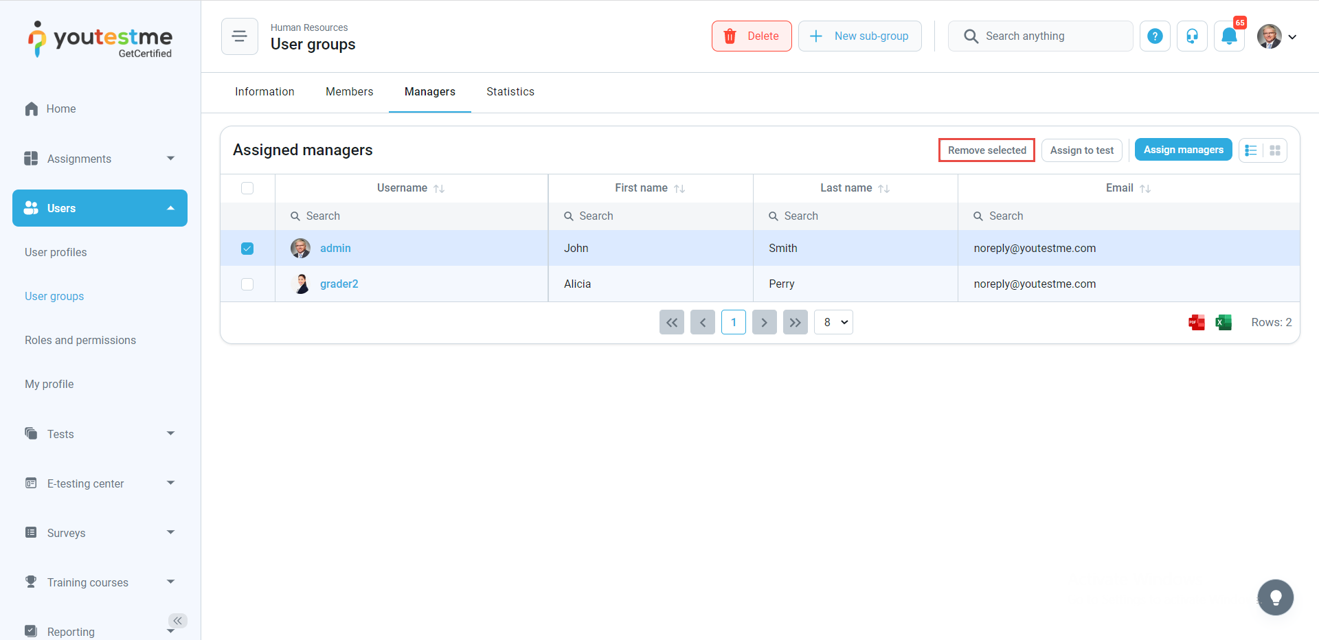 - Assigned as a group manager – The notification triggers when you are assigned as the manager of a user group. To assign a manager to the group, navigate to the Managers tab of the user group, click the Assign managers button, select the user you will assign as a group manager, and click the Confirm button. After the action is completed, the user is assigned as a group manager, and he will receive the email and application notification with the name of the group you manage.