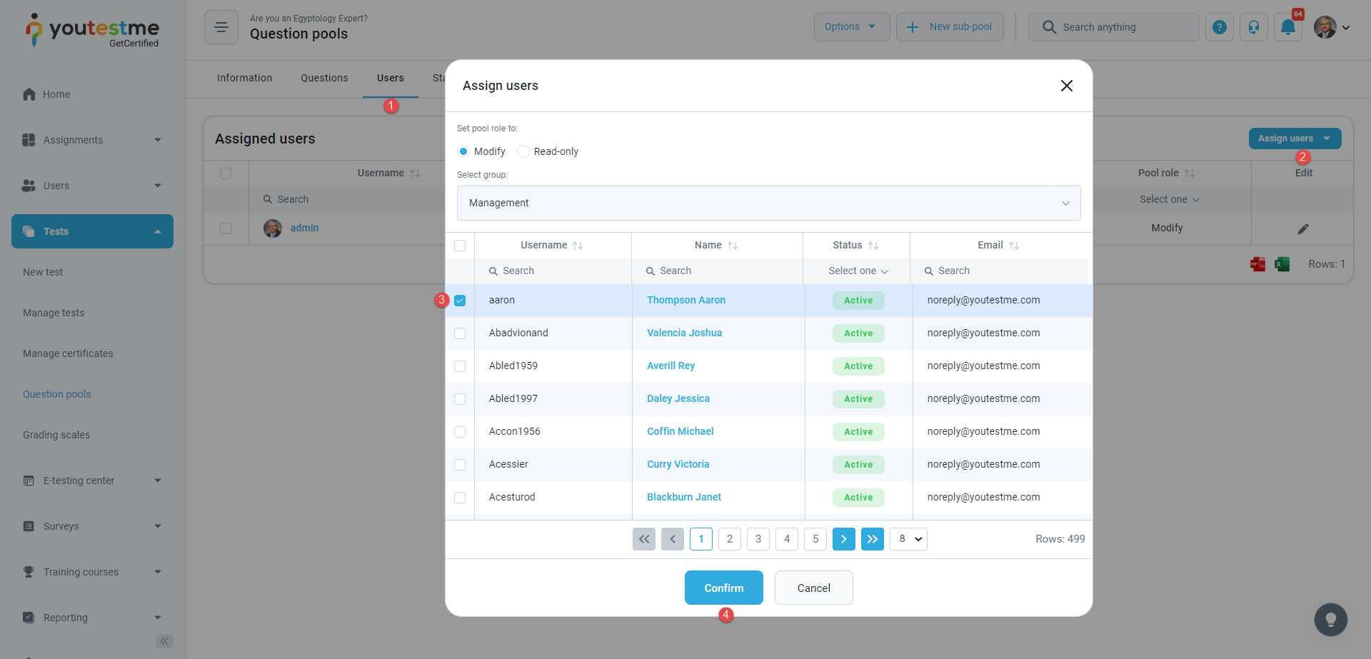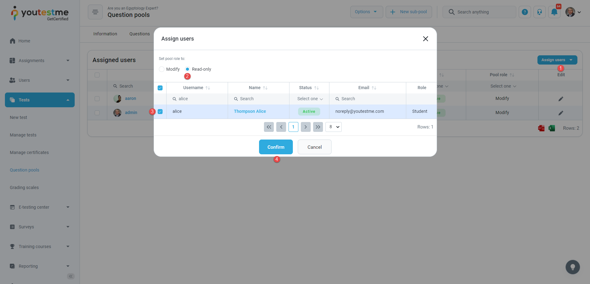 - Assigned as a pool user – The notification triggers when you are assigned as a pool user. The procedure of assigning the pool user is similar to the procedure of assigning the group manager. The only difference is that you must select a Read-only group role and click the Confirm button to assign a pool user. After the action is done, you will receive an email and application notification. The notification text contains the name of a pool you are a member of.