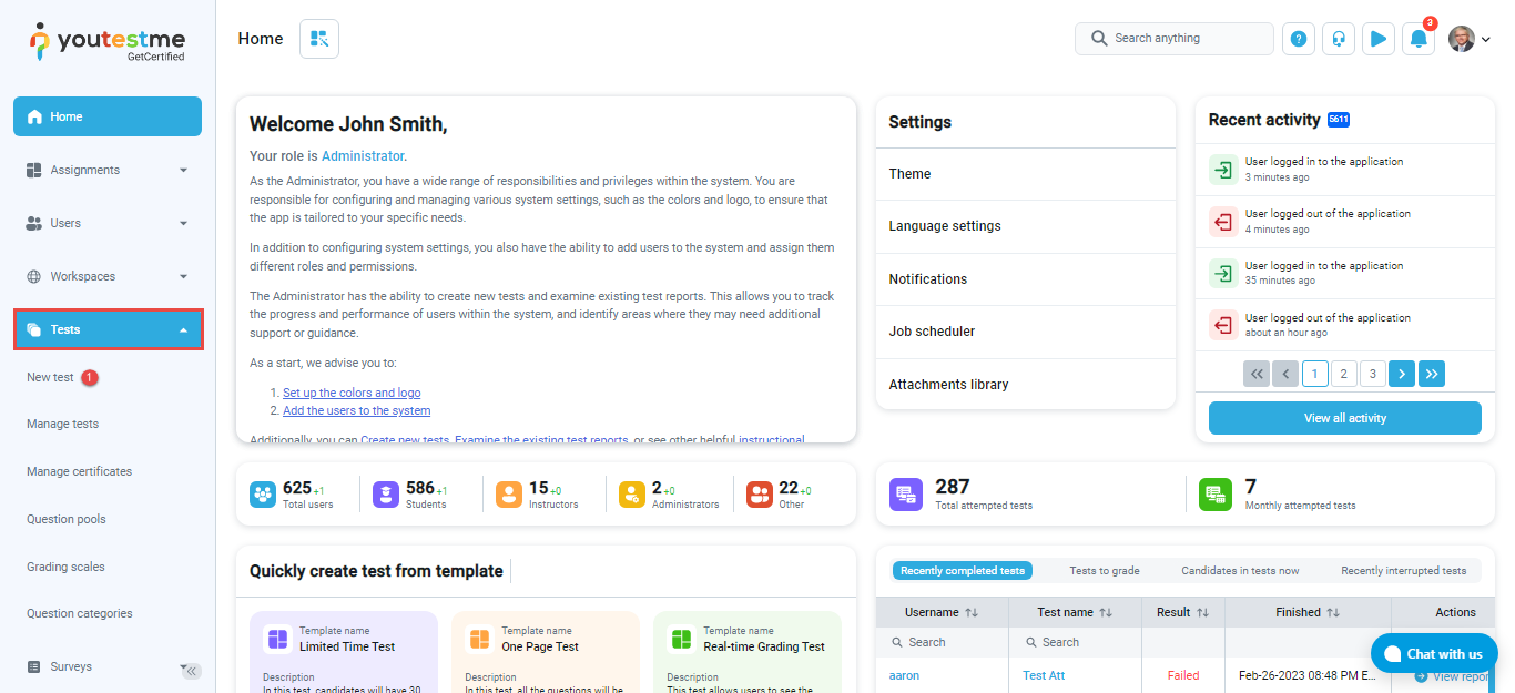 Keep in mind that you can change this setting at any time, both for the draft and published tests. Select the desired test, then follow the steps below: