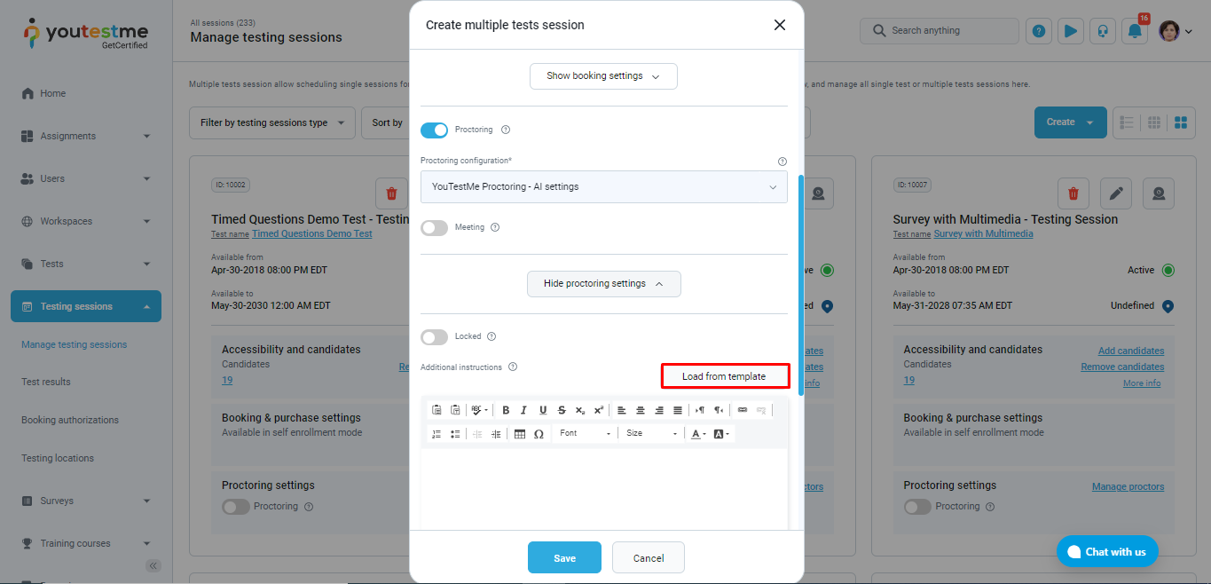 By creating these templates, you can establish default instructions for both types of sessions, thus eliminating the need to enter session instructions each time a new session is created. This simplifies the process of creating new sessions as you can easily select the pre-defined template and save time while streamlining the organization of sessions.