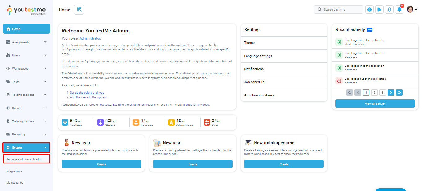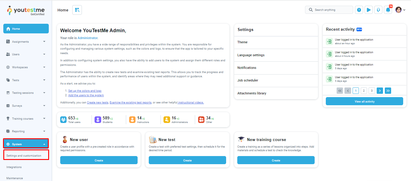 To create a session instructions template, navigate to System and select Settings and Customization.