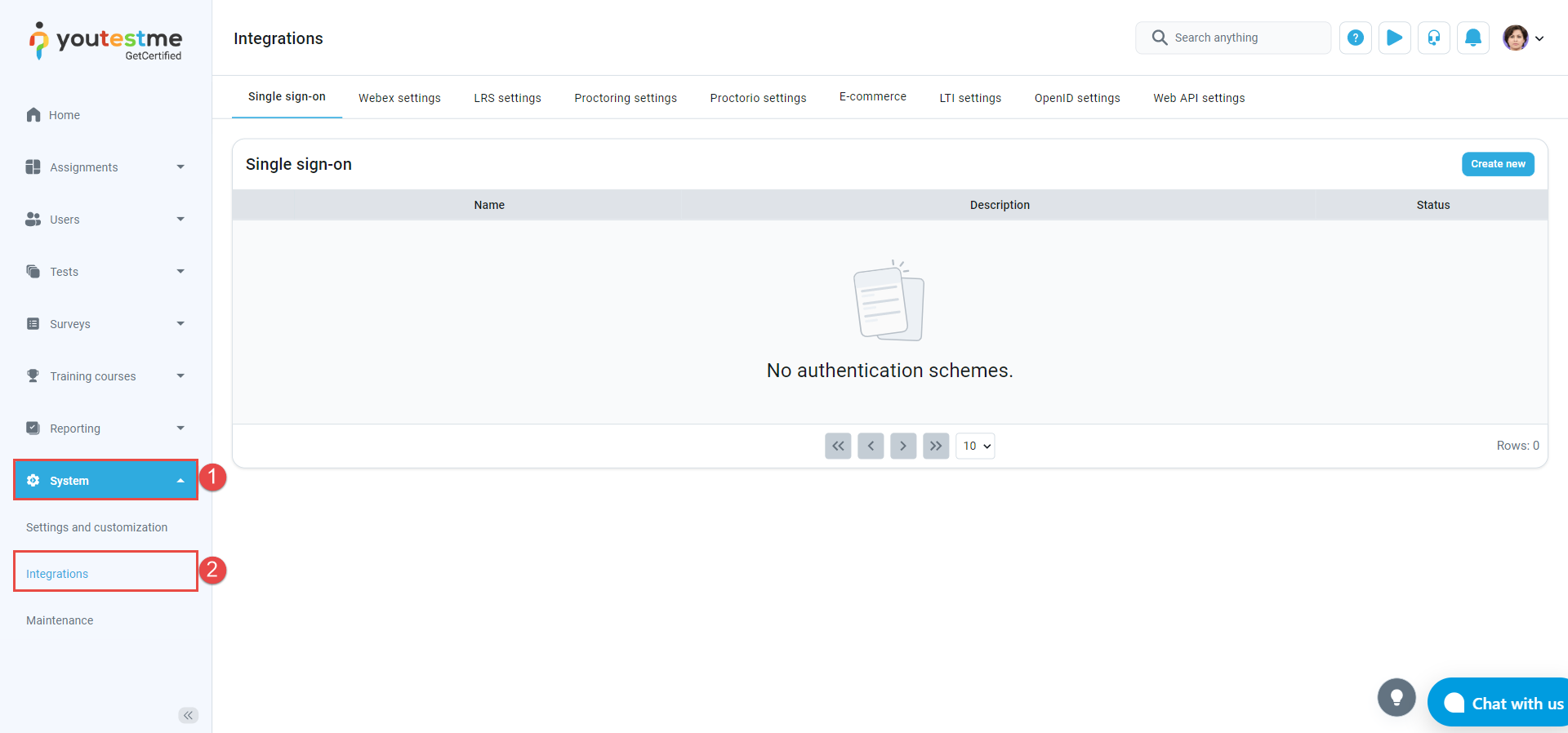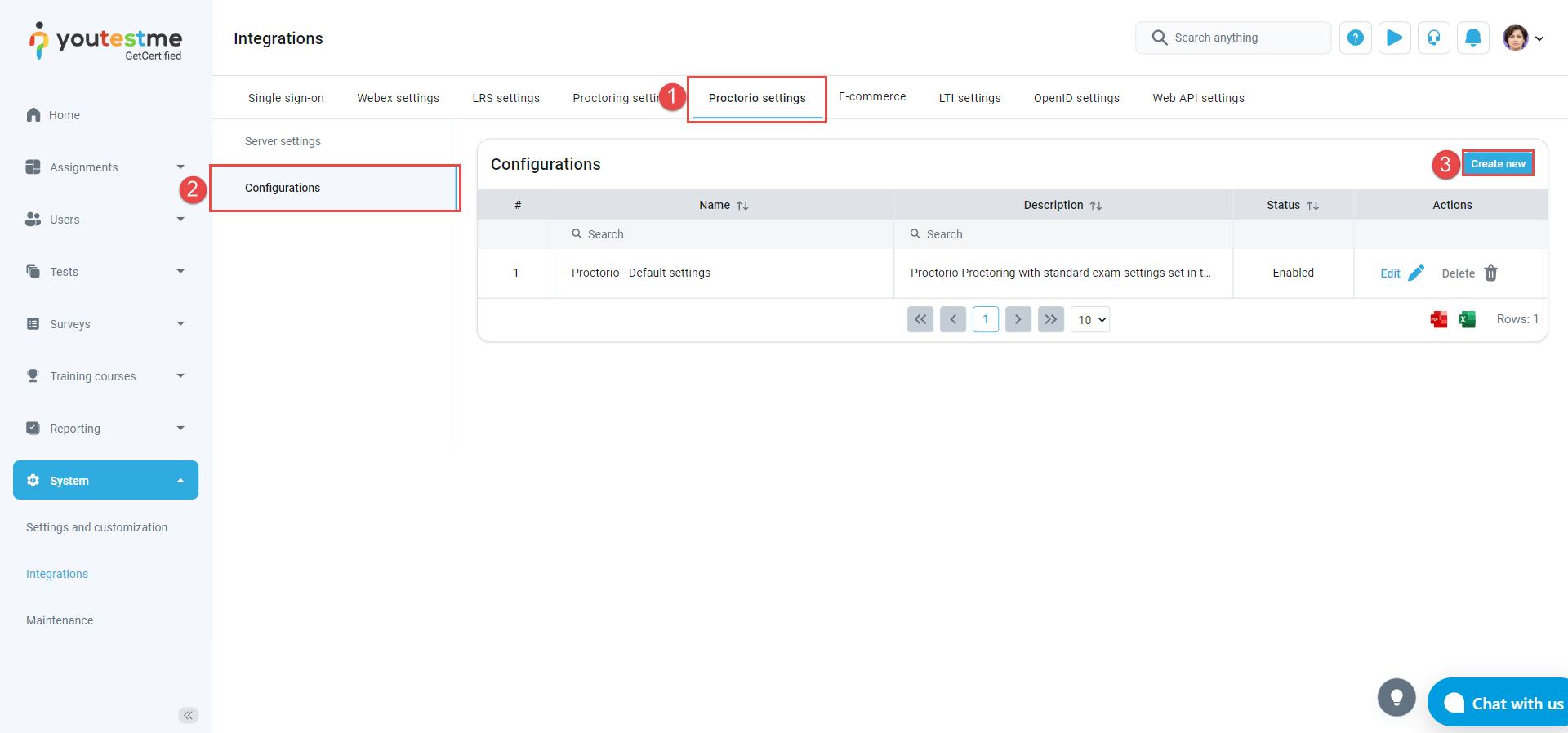 3. Click on the “Create new” button to create custom Proctorio settings.