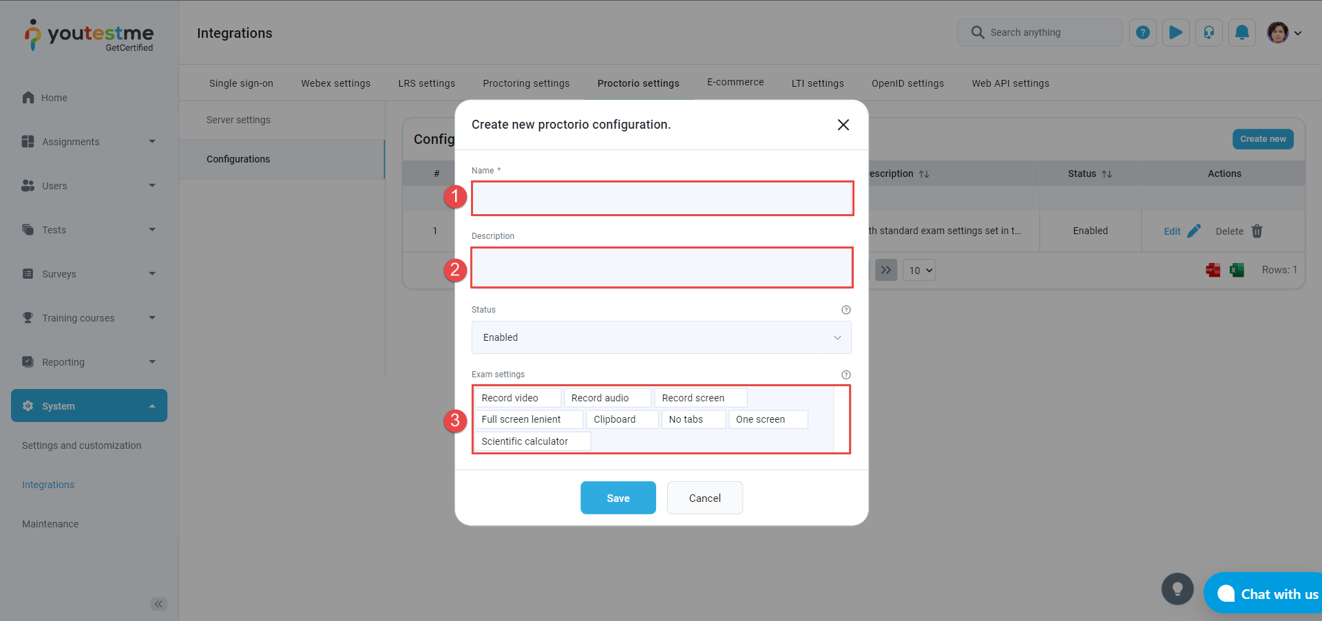 This article explains creating a test proctored with Proctorio, an automated proctoring tool integrated with YouTestMe GetCertified.  This integration ensures the total learning integrity of every assessment using state-of-the-art technology. It eliminates human error, bias, and much of the expense associated with remote proctoring and identity verification. The system automatically monitors the test attempt using behavioral trackers and records the entire process, marking the moments of suspicious behaviors. Once the exam is finished, the system stores the exam footage for subsequent human review and validation.