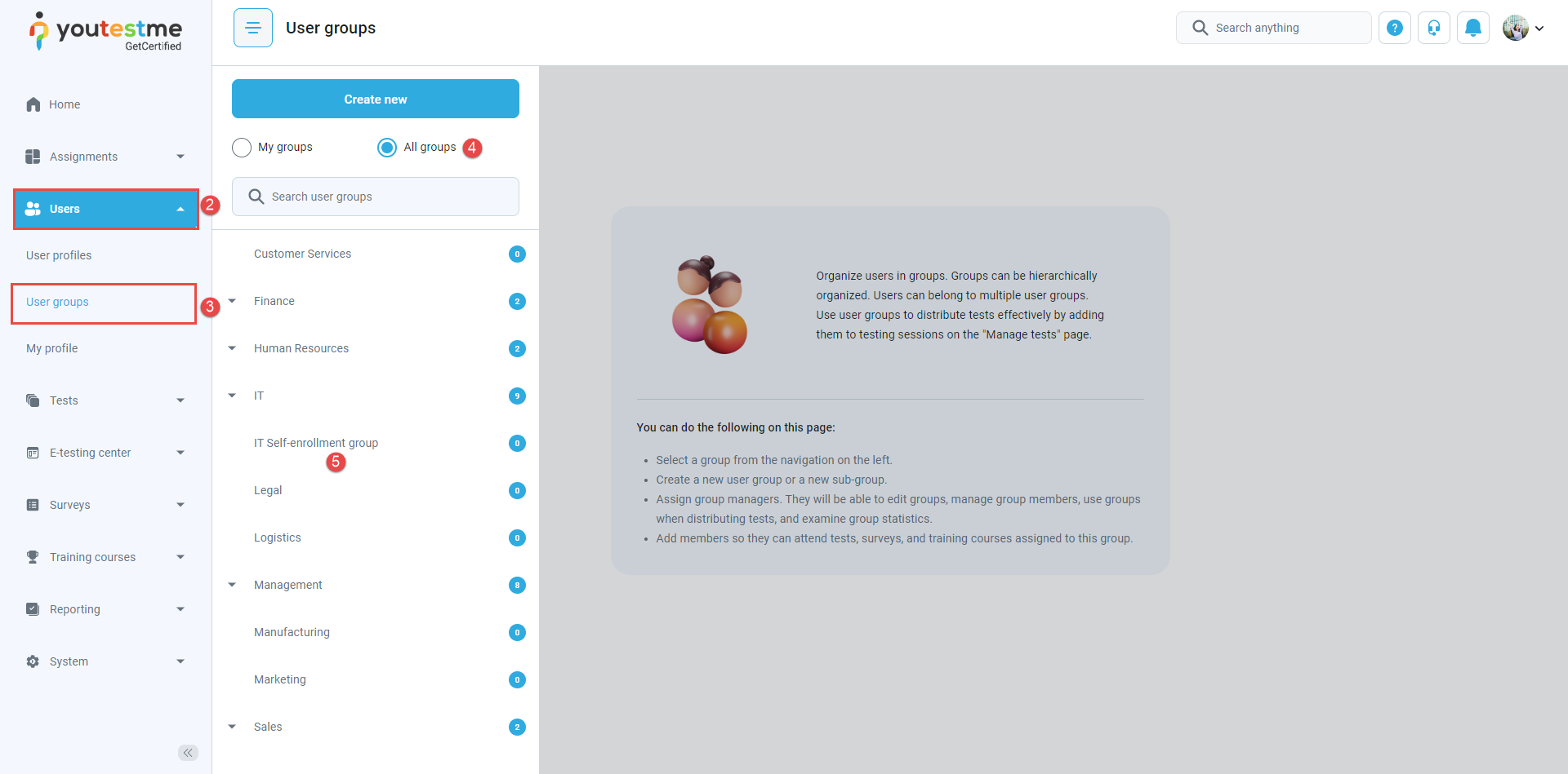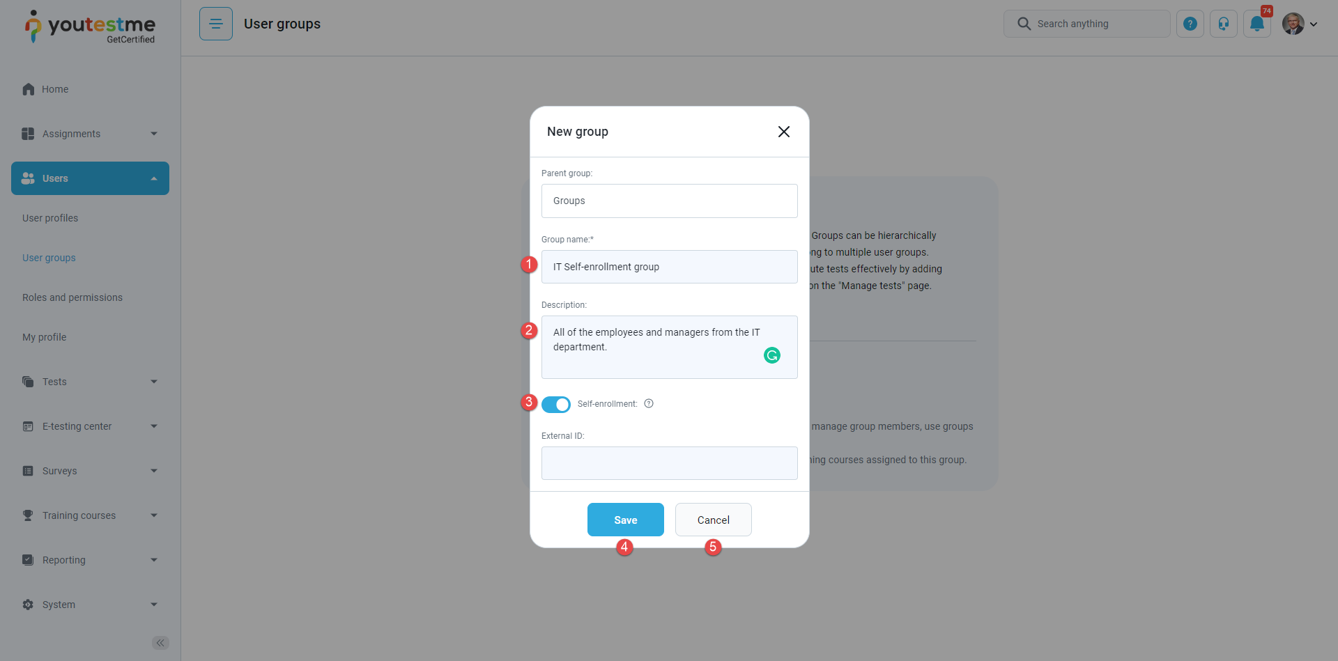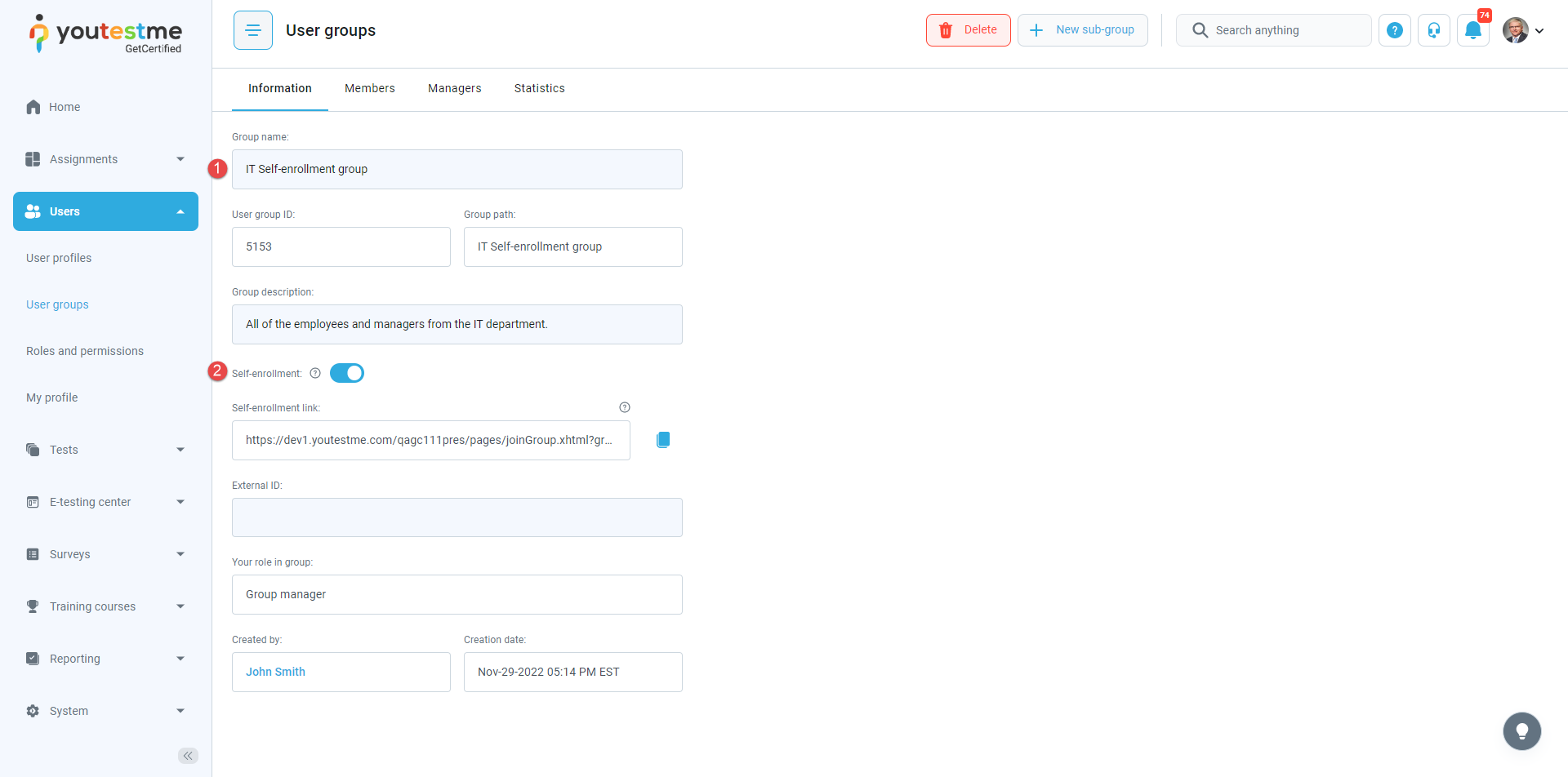 To allow a student to self-enroll in the user groups, a group manager needs to enable the self-enrollment option as follows:
