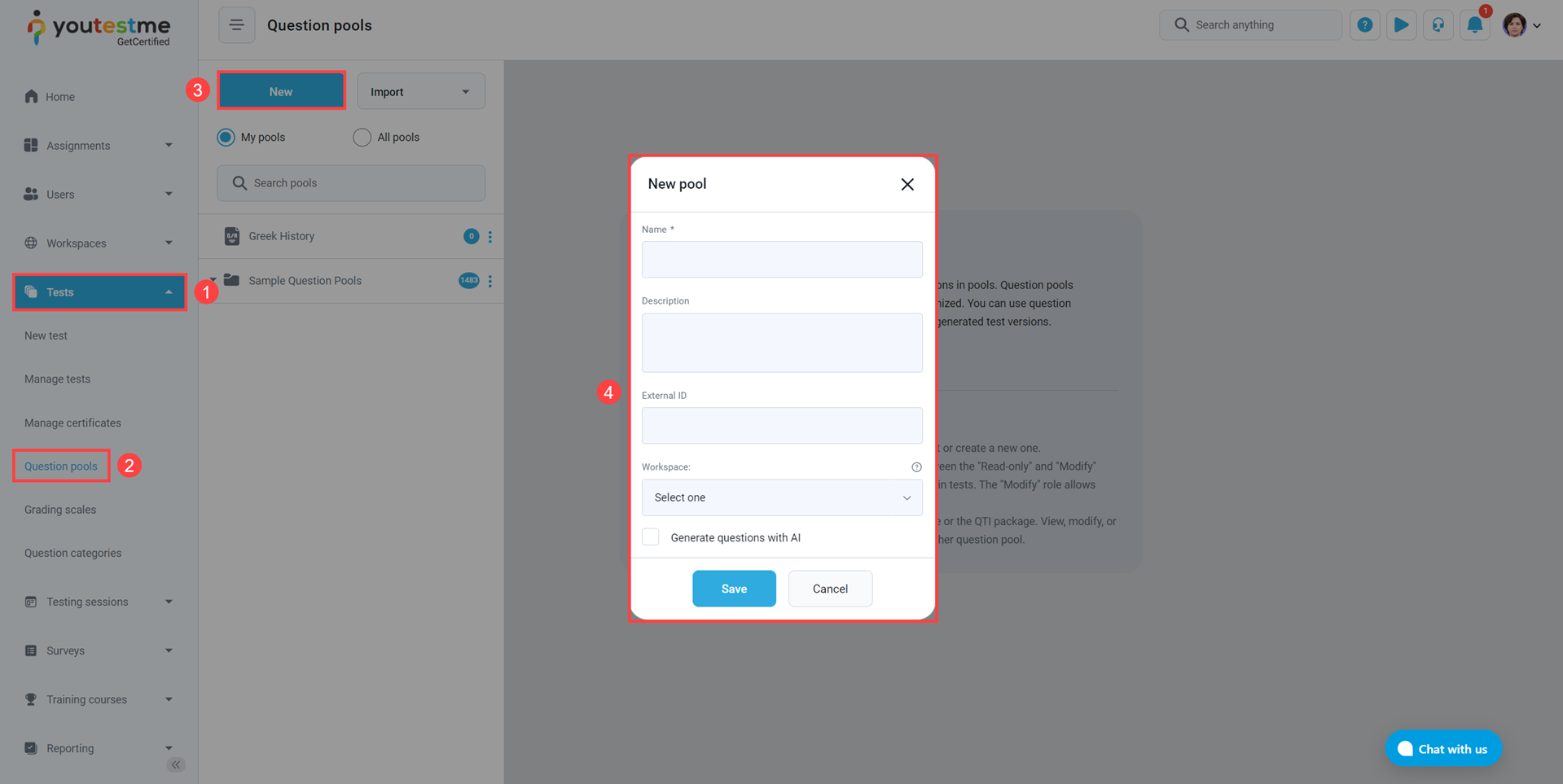First, you need to create a new question pool (unless you already have one) before we start generating questions using AI.