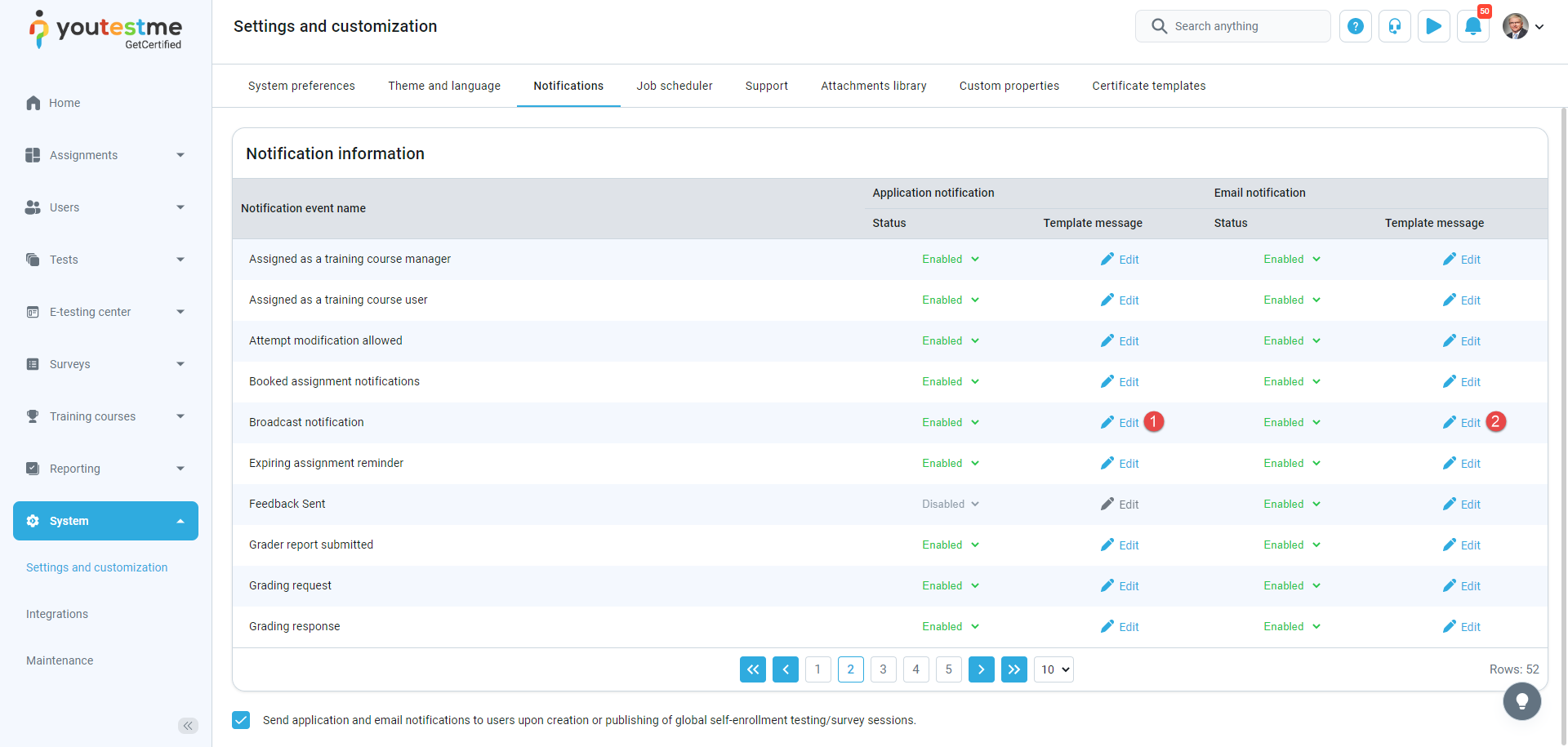- Click Edit in the Email notifications column.