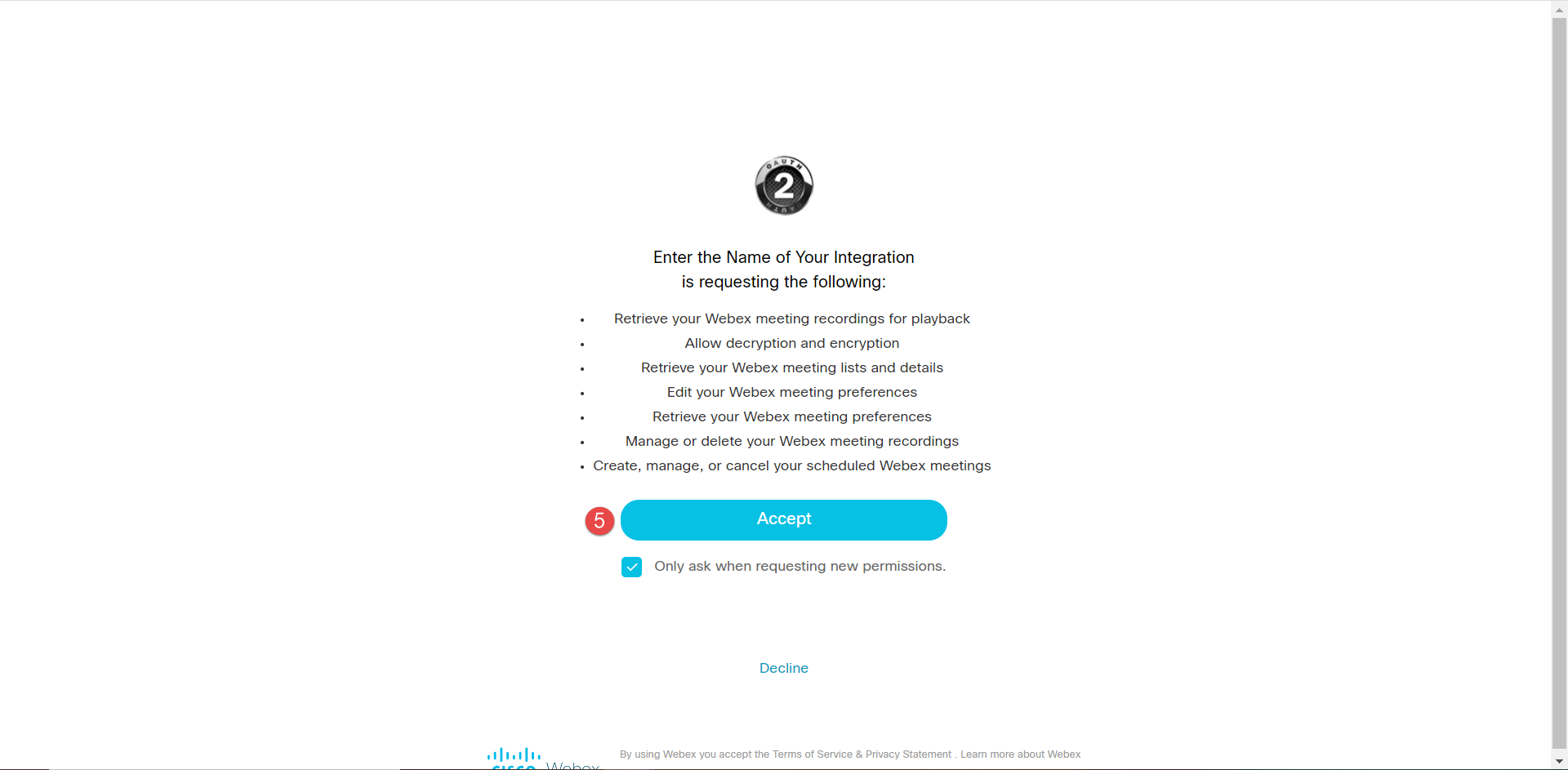 3. After registering the integration on the hosting Webex account, you can find this information. Use the Redirect URI parameter later to configure the Redirect URI of the app at https://developer.webex.com/.