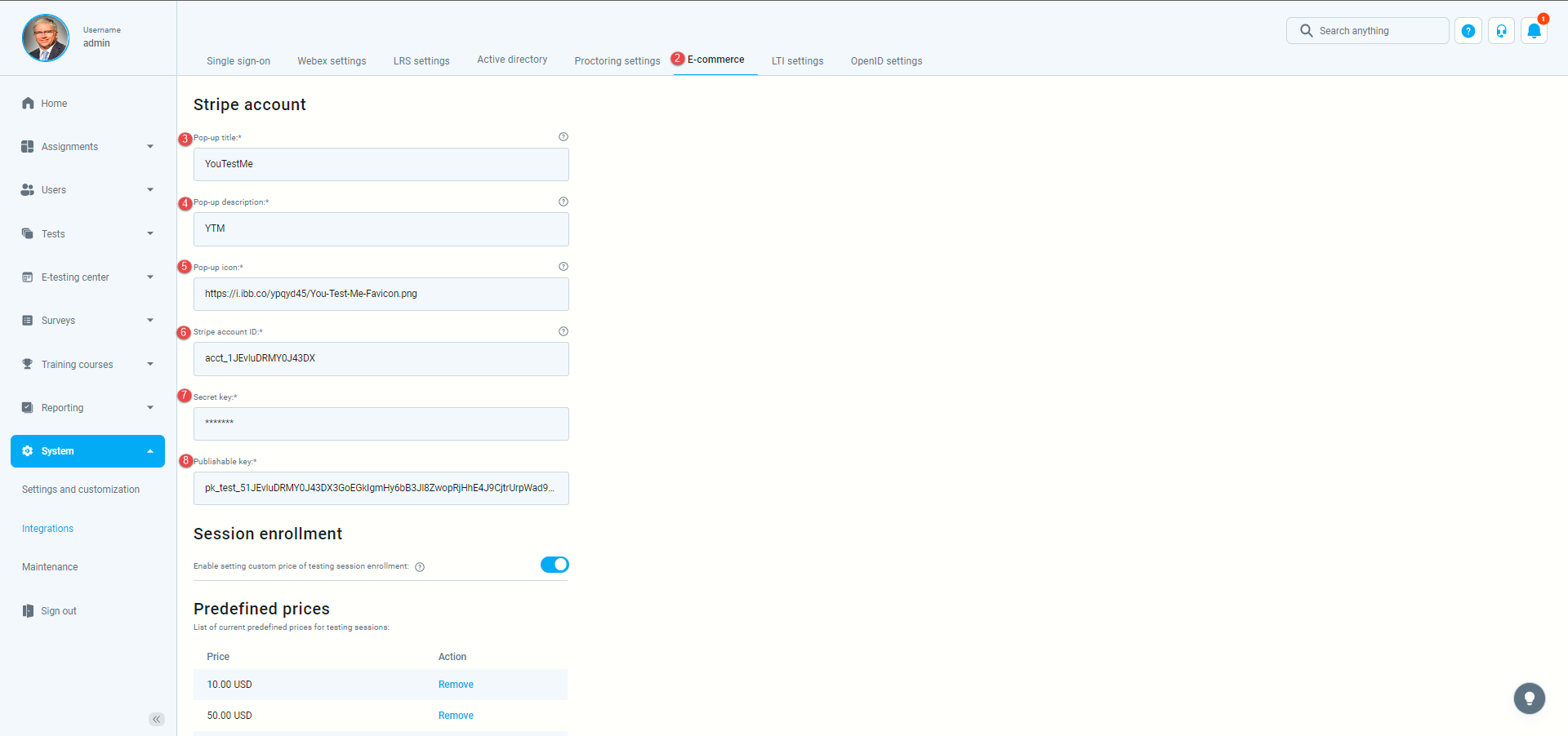 - Enter the Stripe account ID – the ID of your Stripe account connected to the YouTestMe Stripe platform.