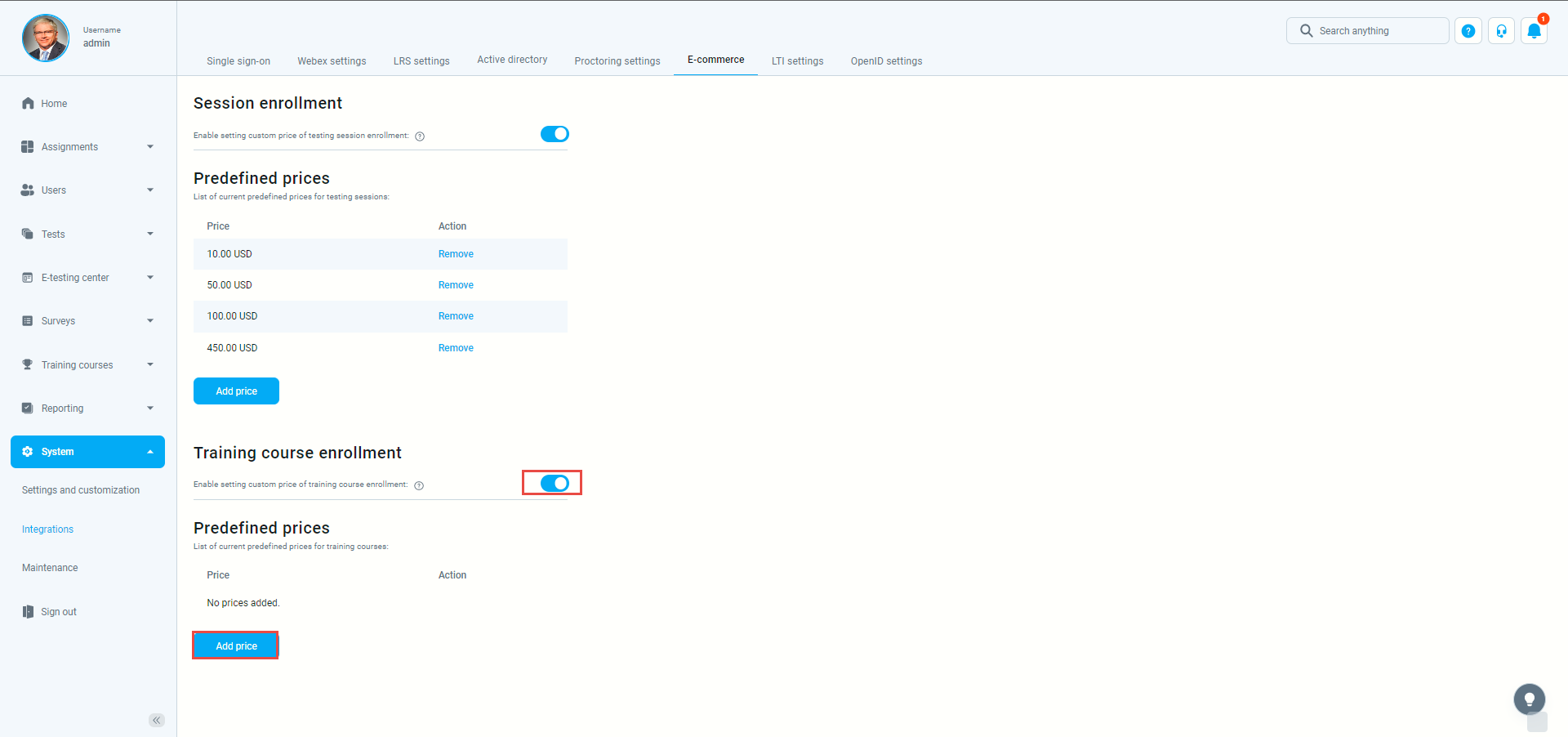 - The “Enable custom setting of training course enrolment price” option must be disabled.