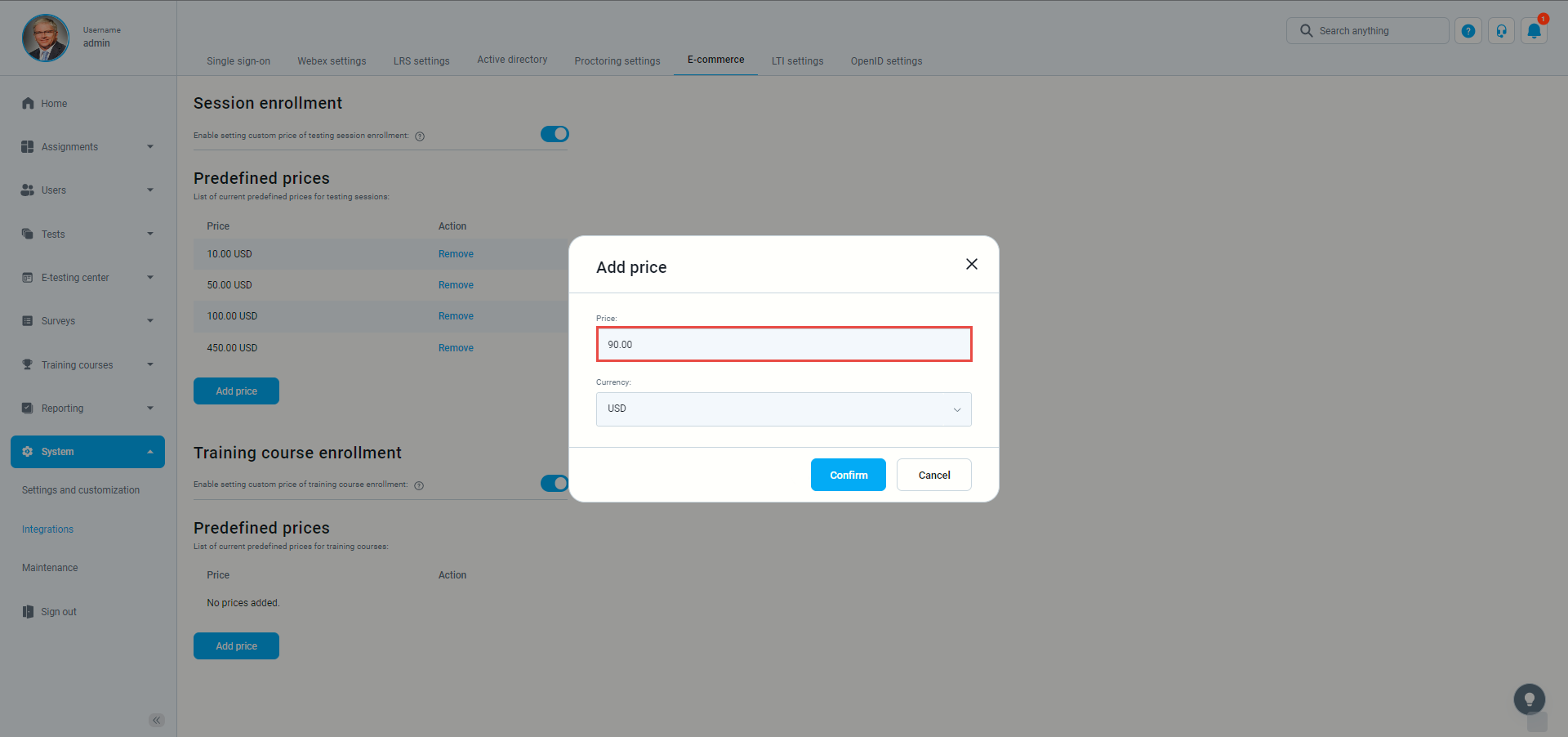 Once you are done setting up your training course, you can define a custom price. An example is displayed in the picture below.