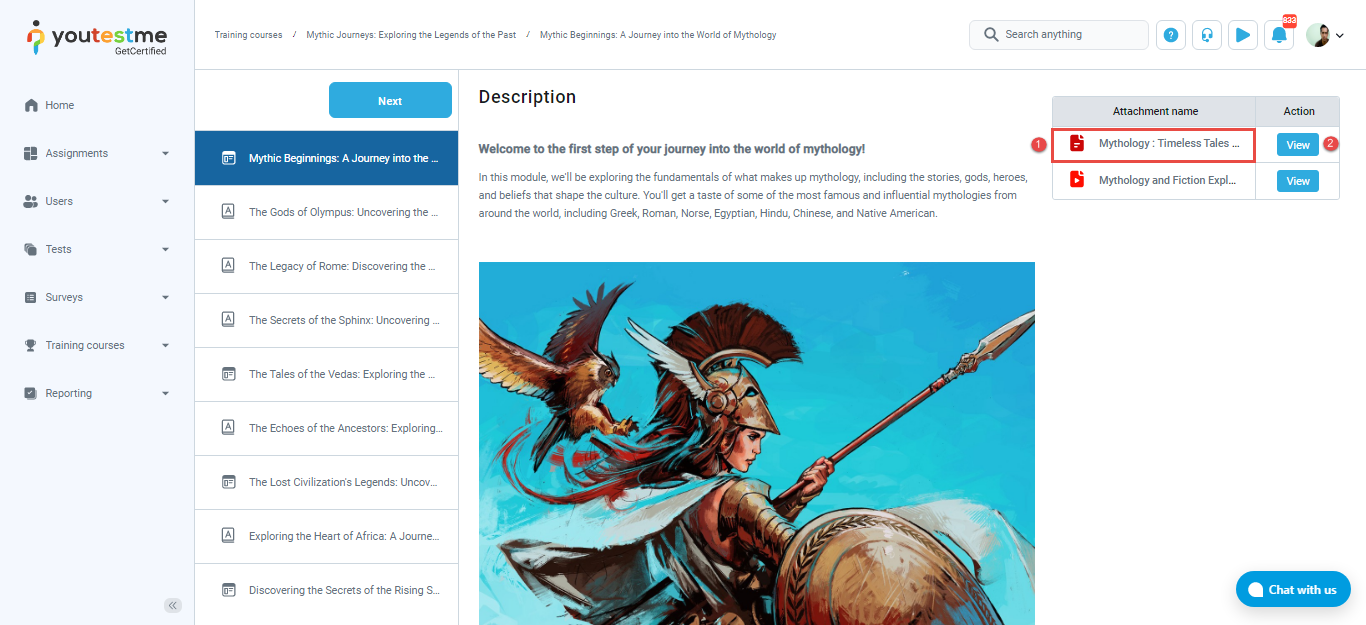 Now navigate to the “My assignments” tab once again. You can see that the training course is completed and also you can perform the following actions:
