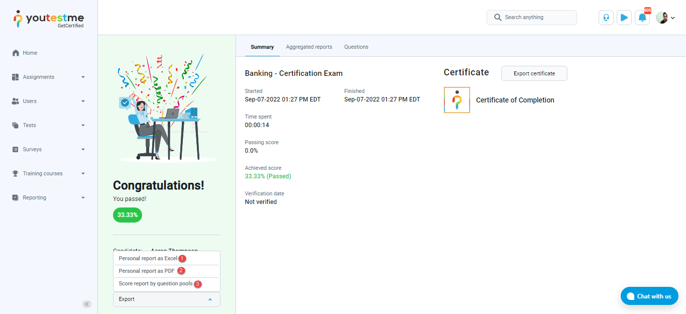 After you finish the test and a test manager resolves your testing report, you can move to the training course’s next step. If you have passed the test, you can: