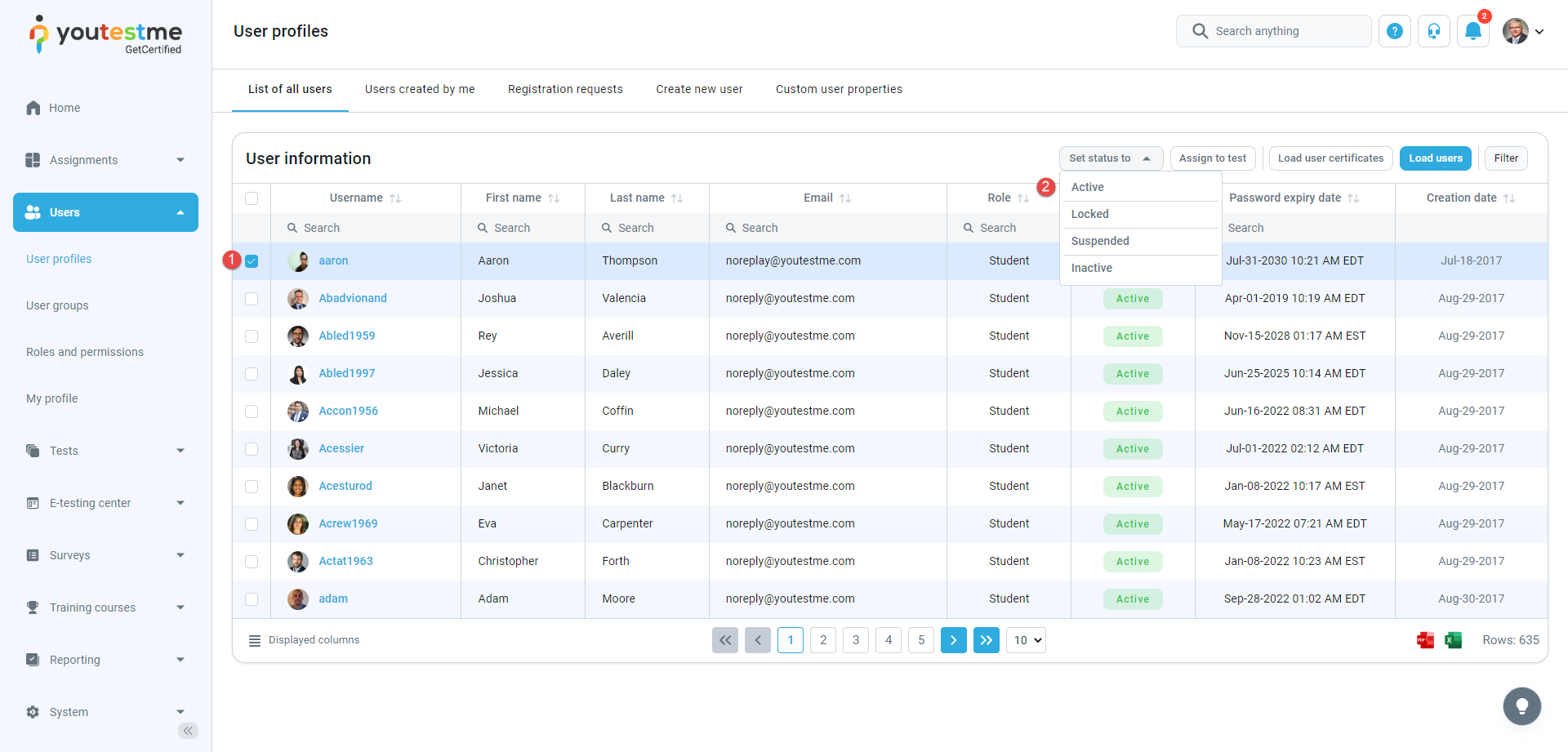 Note: You can change the user status to Locked, Suspended, and Deleted in the same way.