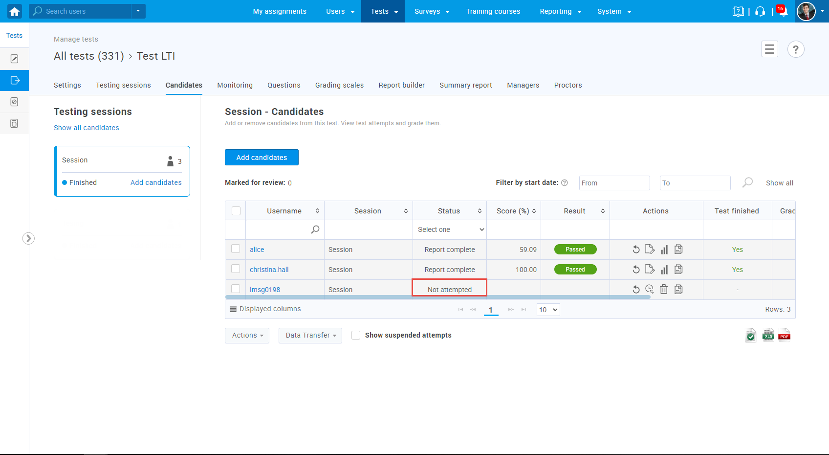 - Test attempts must have “Not attempted” or “Ready to continue” status.