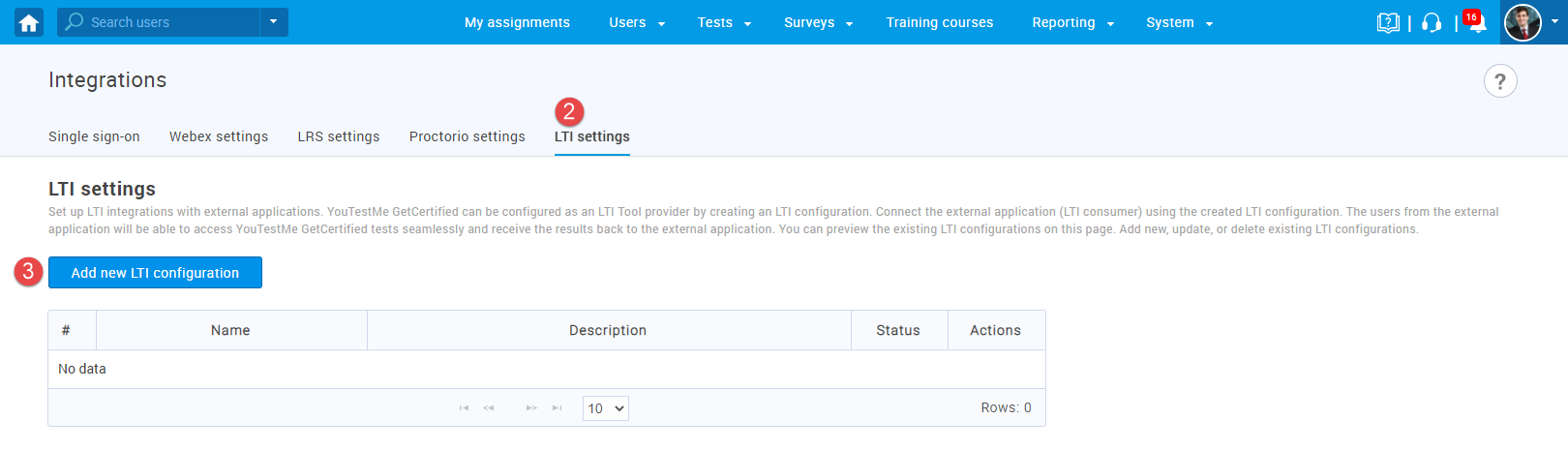 - Click the “Add new LTI configuration”.