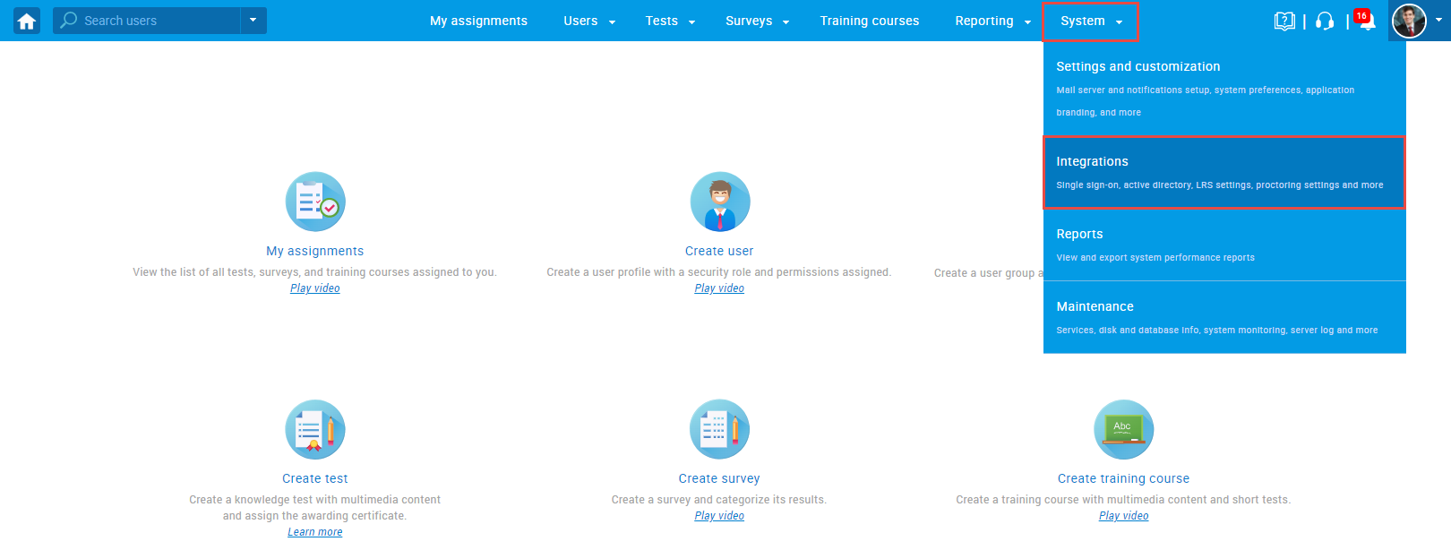 - Hover over the “System” section in the main menu, selecting “Integrations”.