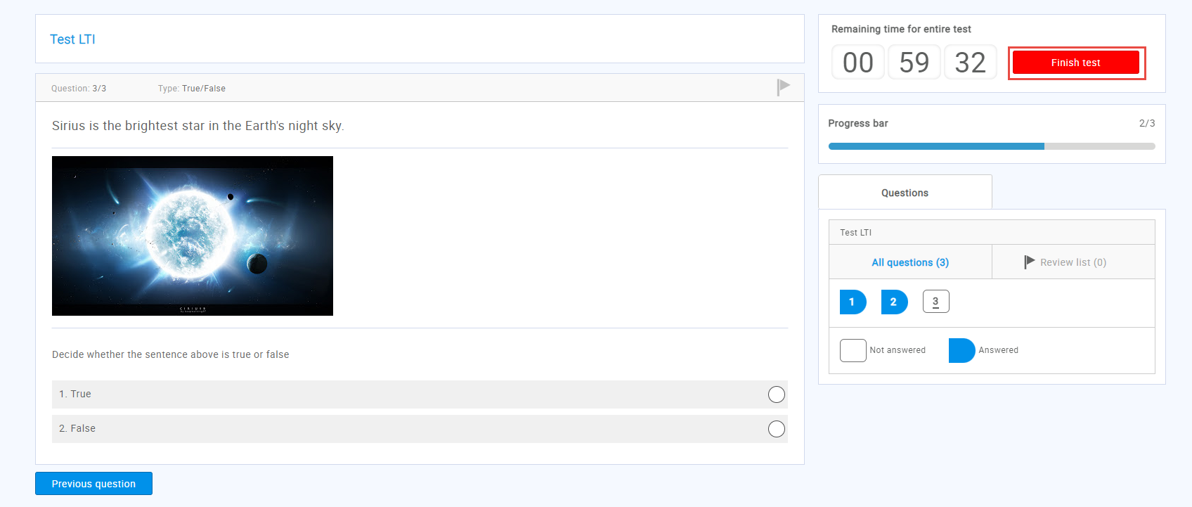 - Answer questions, then finish the test by clicking the “Finish test” button.