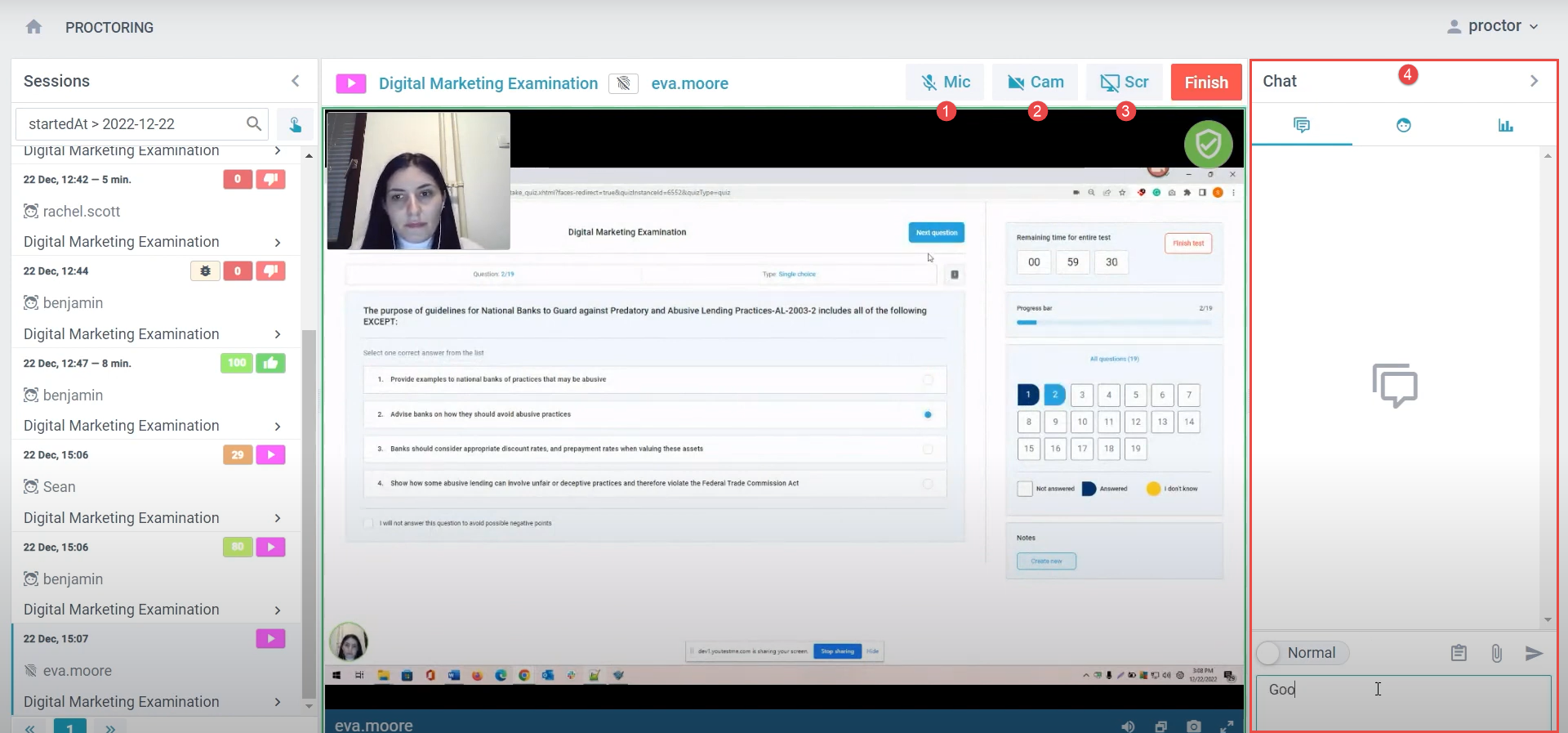 In Live Monitoring during exams, the use of technology can be very helping the proctor maintain the integrity of the assessment process. The system can assist the proctor by automatically detecting violations and providing real-time alerts.