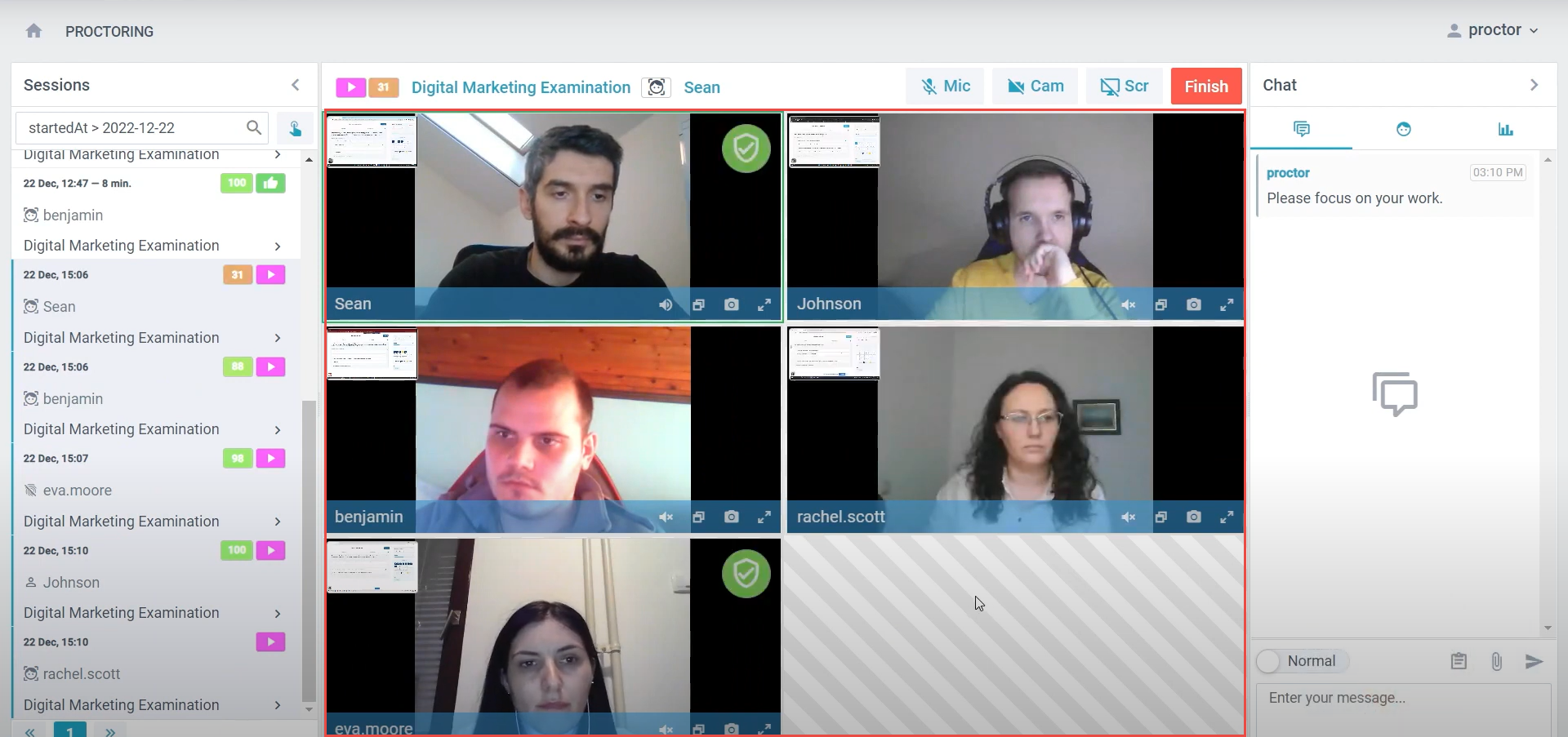The real-time alerts provided by the system enable the proctor to intervene quickly and prevent any potential cheating from occurring. For example, if the system detects that a candidate has opened a new tab, the proctor can immediately investigate the situation and ask the candidate to close the tab. If the system detects that the candidate is not looking directly at the screen, the proctor can remind the candidate of the exam rules and ask them to maintain proper eye contact with the screen.