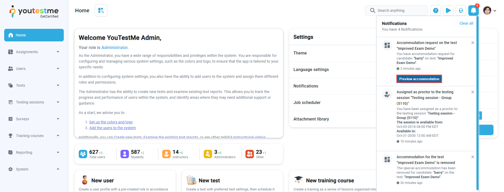 As soon as the test organizer adds a special accommodation, the proctor receives a notification via email and app, informing them of the new request. When the proctor clicks on the Preview button, a pop-up dialog appears, giving them the opportunity to either approve or reject the accommodation.